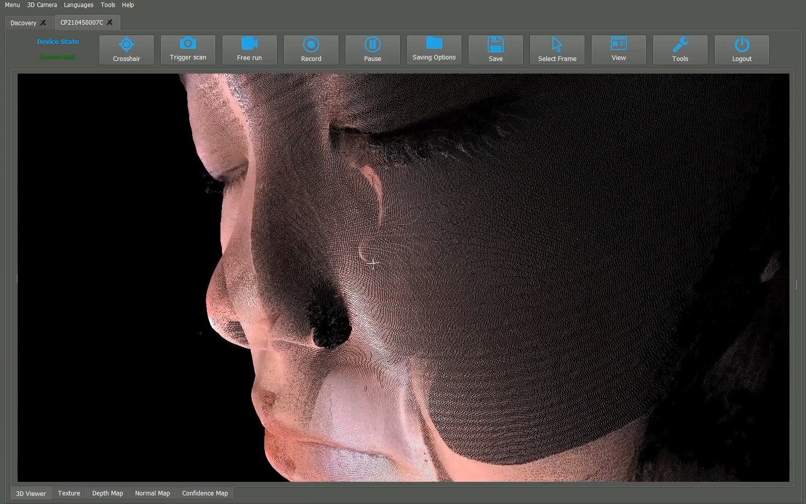 클레의 3D머신비전 기술이 사람 얼굴 내 400만개 지점에 대해 0.1mm 오차로 촬영한 화면. 클레 제공 |