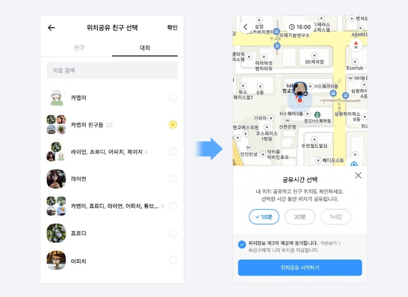 카카오톡 ‘친구위치’ 기능. 카카오톡 공식 블로그 캡처 |