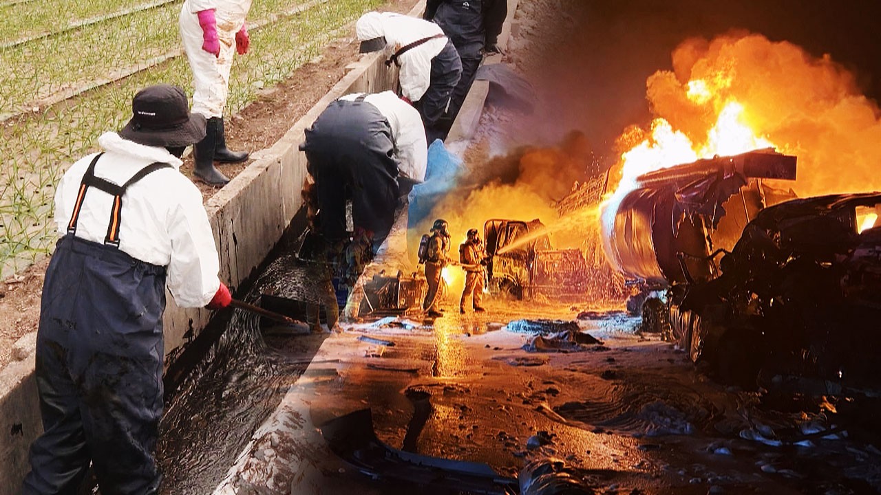 이 일대는 온통 기름으로 뒤덮였는데 인근 논밭 수로로도 흘러 들어갔습니다.