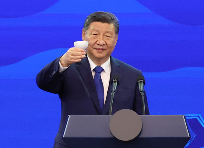 시진핑 중국 국가주석이 1일 경북 경주 소노캄에서 열린 국빈만찬에서 건배사를 하고 있다. (사진=연합뉴스) |