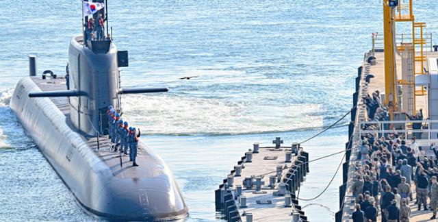 해군은 18일부터 한 달간 미국 괌 근해에서 열리는 한미 연합대잠전훈련인 '2025 사일런트 샤크(Silent Shark) 훈련'에 참가한다고 17일 밝혔다. 이 훈련은 한미 잠수함 및 항공기 간 연합작전 수행능력 및 상호 운용성 강화를 위한 한미 연합 대잠전훈련이다. 이번 훈련에 도산안창호급 잠수함 안무함(SS-III·3000t급)과 P-3 해상초계기 2대가, 미국 해군은 잠수함과 P-8 해상초계기가 참가한다. 특히 안무함은 국내 방산기술로 독자설계·건조한 잠수함으론 최초로 해외 연합훈련에 참가하게 된다. 사진은 지난 4일 안무함이 진해군항에서 출항하는 모습. 해군제공