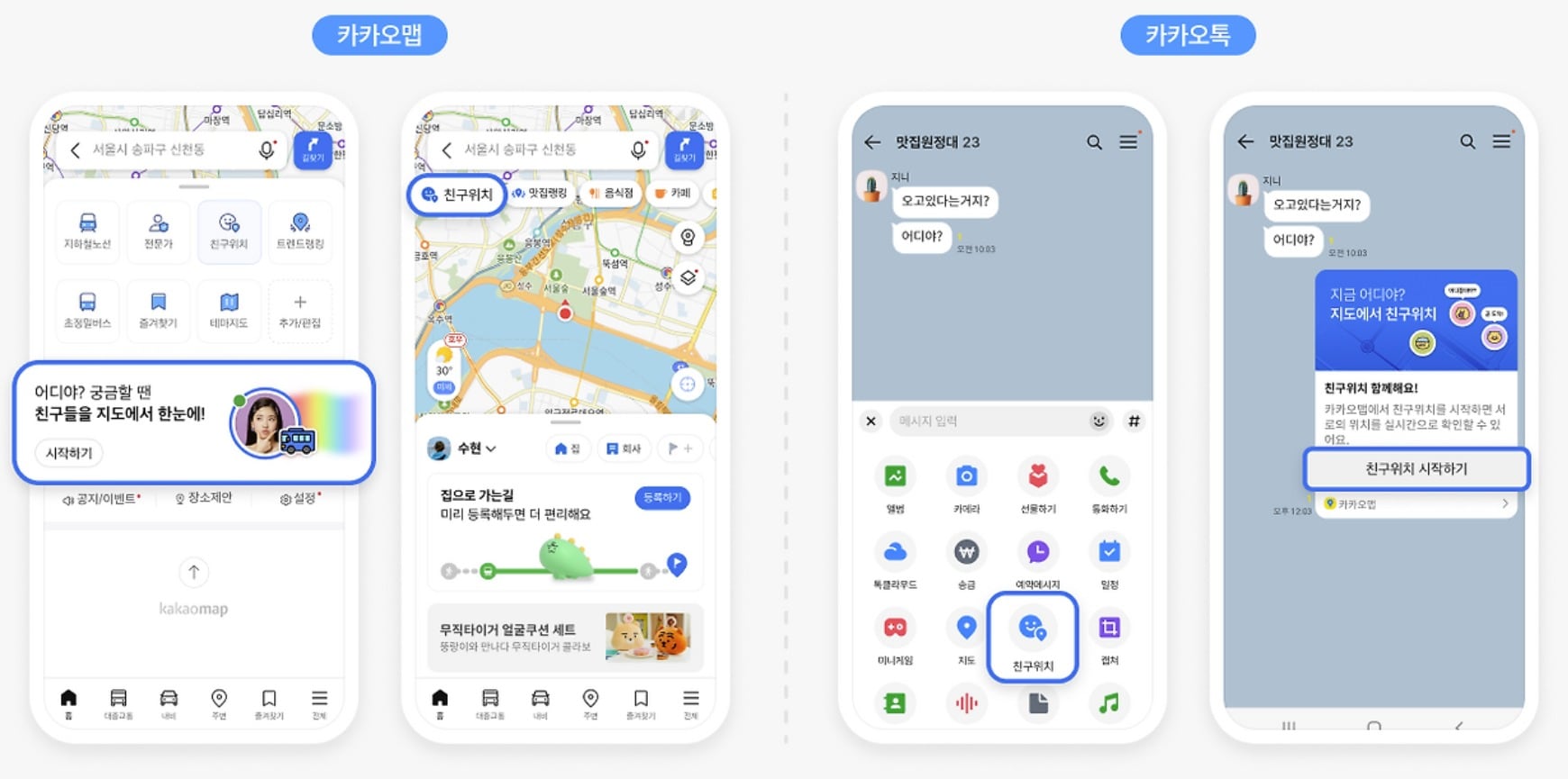 18일 카카오맵에 따르면 카카오는 지난 12일 톡친구 위치공유 서비스를 ‘친구위치’ 기능으로 업데이트했다.