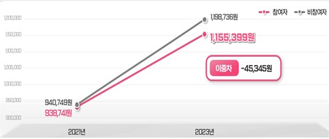 같은 기간 비참여자는 25만9천995원(93만8천741원→119만8천763원)이 늘어, 참여자의 의료비 증가액이 4만5천345원 적었다.