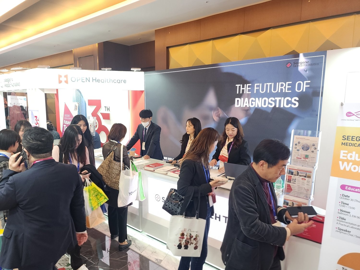 씨젠의료재단은 부스를 운영하며 씨젠의 세계 최초로 구축한 분자 진단 PCR 검사 전 과정 자동화 시스템(CURECA), AI 기반 연구 환경, 차세대 검사정보시스템 ‘SeeLIS(씨엘아이에스)’ 등 첨단 기술 인프라를 소개했다.