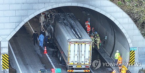 한국도로공사는 터널 내 통행을 전면 차단하고 국도 우회를 안내했다.
