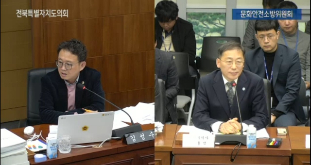 김성수 도의원(고창1)은 이날 "올 6월 25일 재난안전관리위원회 실무위원회를 개최했는데 위원장인 행정부지사가 의회 본회의 참석을 이유로 위원회에 참석하지 않았다"며 "본회의 일정은 연초부터 공개됨에도 같은 날에 안전관리위 실무위를 개최해 위원장이 불참한 것은 문제가 있는 것"이라고 강하게 질타했다.