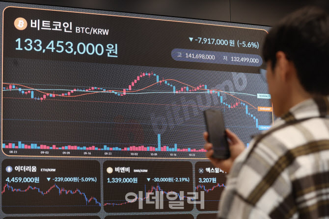 [이데일리 이영훈 기자] 비트코인이 하락을 거듭하며 7개월 만에 9만 달러선이 붕괴한 18일 서울 강남구 빗썸라운지에 설치된 전광판에 비트코인 시세가 나오고 있다.