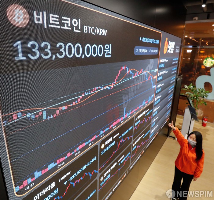[서울=뉴스핌] 류기찬 기자 = 비트코인이 7개월 만에 9만 달러 선 밑으로 하락한 18일 오후 서울 강남구 빗썸라운지 전광판에 비트코인 시세가 표시되고 있다. 오후 3시 빗썸 기준 1억 3천 3백만원대를 기록하고 있다. 2025.11.18 ryuchan0925@newspim.com