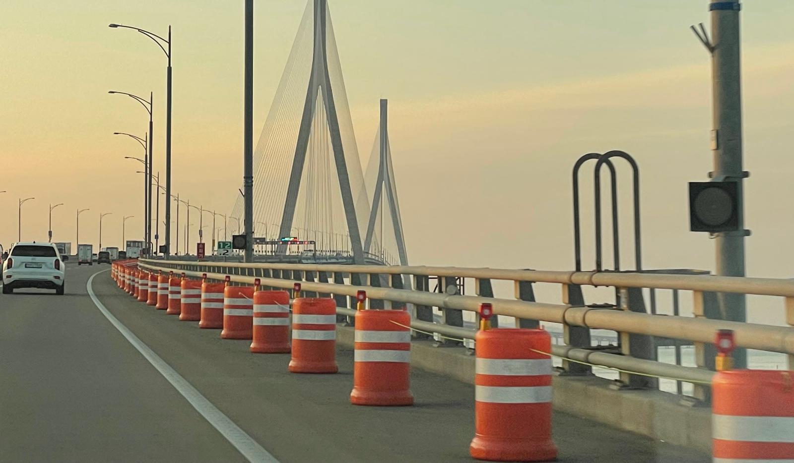 18일 인천대교 운영사는 지난달 주탑 부근 양방향 3㎞(각 1.5㎞) 구간 갓길에 플라스틱 드럼통 600여 개를 재설치했다고 밝혔다.