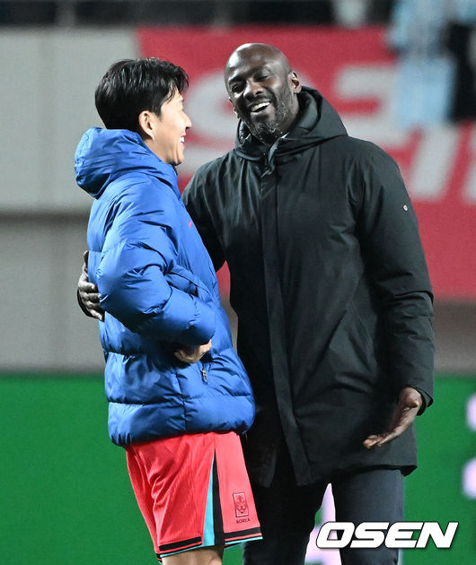 [OSEN=서울월드컵경기장, 이대선 기자] 홍명보호가 어려운 경기 끝에 2025년 마지막 A매치를 승리로 장식했다.홍명보 감독이 이끄는 한국 축구대표팀은 18일 오후 8시 서울월드컵경기장에서 열린11월 A매치 두 번째 친선경기에서'아프리카 강호' 가나를 상대로 1-0 승리했다.내달 2026 국제축구연맹(FIFA) 북중미 월드컵 조 추첨을 앞두고 열리는 마지막 평가전이었다.한국은 가나까지 잡아내면서 사상 최초로월드컵 포트 2를 확정하게 됐다.경기 종료 후 대한민국 손흥민이 가나 오토 아도 감독과 이야기를 나누고 있다. 2025.11.18 /sunday@osen.co.kr |