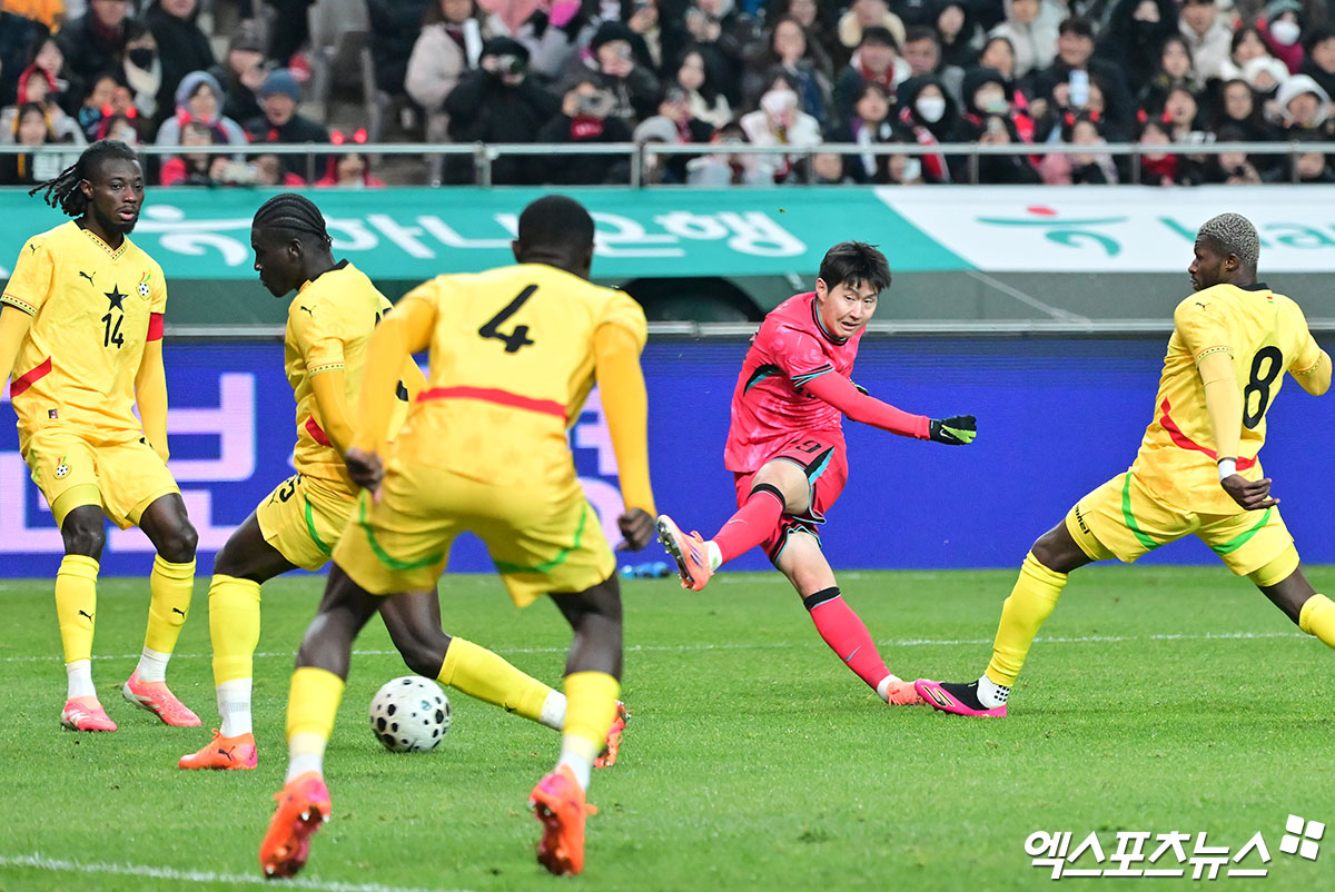 (엑스포츠뉴스 서울월드컵경기장, 김한준 기자) 18일 오후 서울월드컵경기장에서 열린 대한민국과 가나의 축구 대표팀 평가전, 대한민국이 이태석의 결승골에 힘입어 가나에 1:0 승리를 거뒀다.