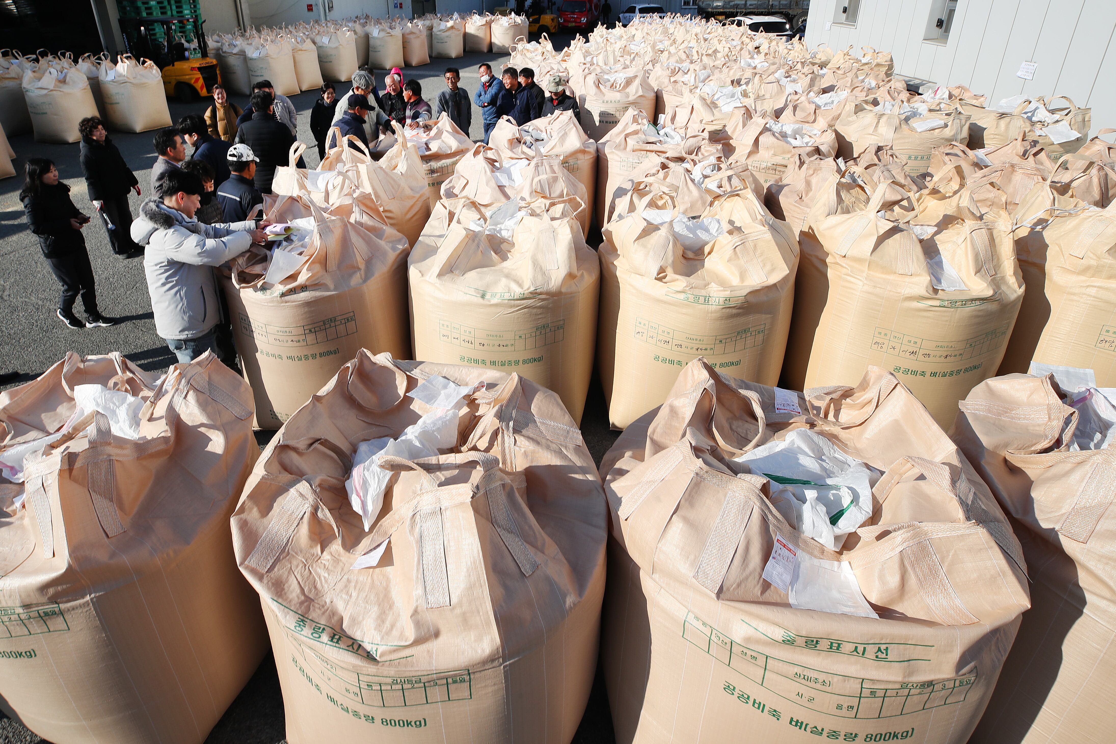 18일 대구 달성군 유가농협 본점에서 2025년산 공공비축미를 사들이는 절차가 진행되고 있다. 국가데이터처는 최근 올해 쌀 생산량이 353만9000톤으로 지난해보다 1.3% 감소할 것으로 전망했다. 쌀 소비가 꾸준히 줄면서 공급 과잉을 막기 위한 정부 정책이 재배 면적 감소로 이어지며 쌀 생산량은 4년째 줄고 있다.