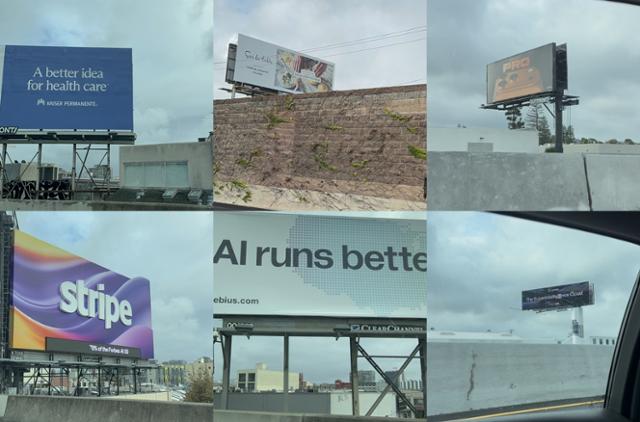 17일(현지시간) 미 캘리포니아주 새너제이에서 샌프란시스코로 향하는 101번 고속도로를 지나가니 지난여름과 크게 달라진 광고판 풍경이 눈에 들어왔다. 지난 7월까지만 해도 '포브스 선정 인공지능(AI)기업 50' 같은 수식어를 앞세운 AI 기업 광고가 도로를 장악했다. 하지만 이젠 중국 공연 예술단 '션윈', 조리도구 회사 '수 라 타블', 의료 서비스 회사 '카이저 퍼머넌트' 등 AI와 무관한 기업 광고가 대폭 늘었다.