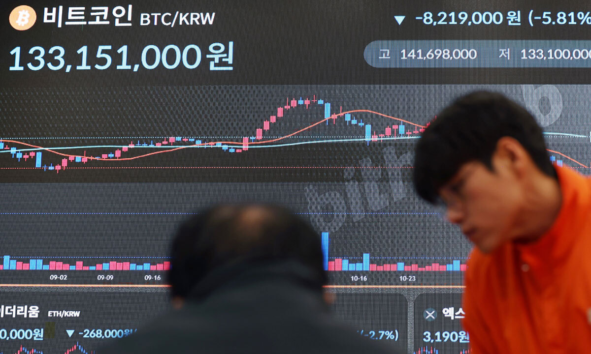 비트코인이 하락을 거듭하며 7개월 만에 9만 달러선이 붕괴한 18일 서울 강남구 빗썸라운지에 설치된 전광판에 비트코인 시세가 나오고 있다. 뉴시스 |
