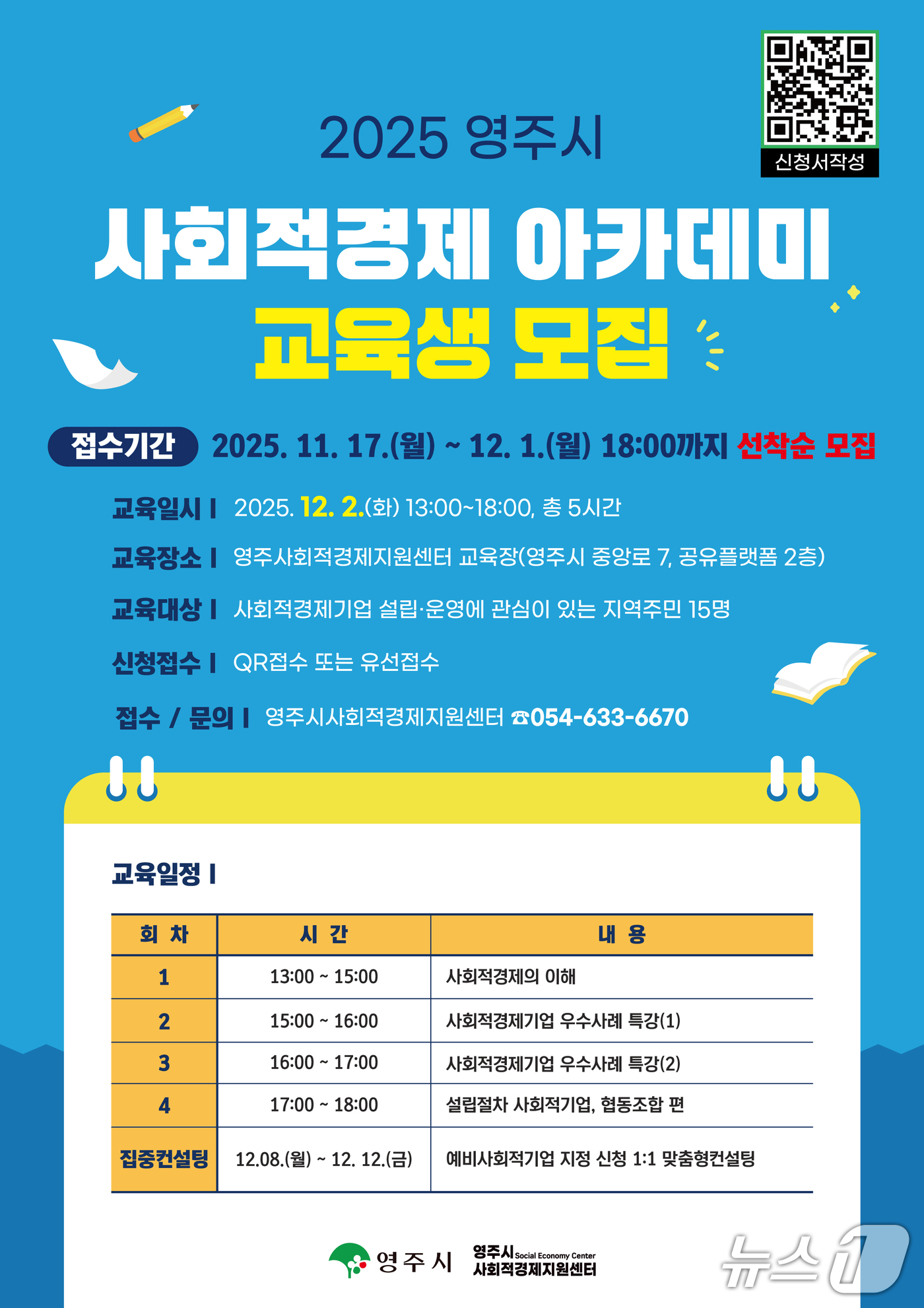경북 영주시가 오는 12월1일까지 '사회적경제 아카데미' 교육생을 모집한다.(영주시 제공. 재판매 및 DB 금지)2025.11.19/뉴스1 |