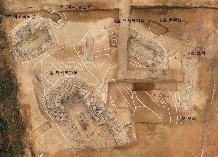 국가유산청은 올해 발굴조사에서 '영천 완산동 고분군Ⅲ' 유적의 직경 16m가량 남아 있는 봉토 내부에서 여러 차례 덧대어 조성된 돌무지덧널무덤 3기와 독무덤(옹관묘) 2기를 조사했다.