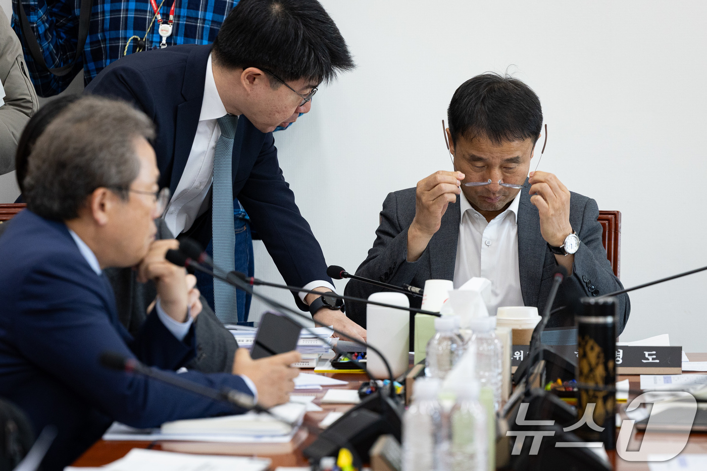 (서울=뉴스1) 유승관 기자 = 한병도 국회 예산결산특별위원장이 19일 서울 여의도 국회에서 열린 제429회 국회(정기회) 제3차 예산안등조정소위원회에서 안경을 쓰고 있다. 2025.11.19/뉴스1