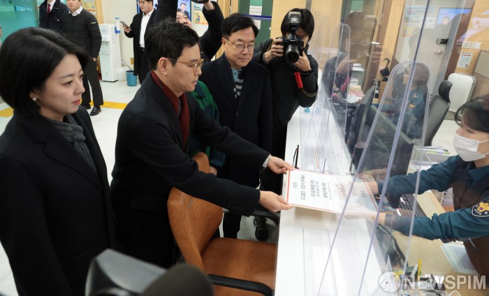 [서울=뉴스핌]박정훈 의원등 국민의힘 서울지역·국회 행정안전위원회 소속 의원들이 19일 오전 서울 종로구 서울지방경찰청 민원실에 김민석 국무총리 공직선거법 및 국가공무원법 위반 혐의 고발장을 제출하고 있다.왼쪽부터 배현진 의원, 박정훈 의원, 서범수 의원. 2025.11.19 gdlee@newspim.com |