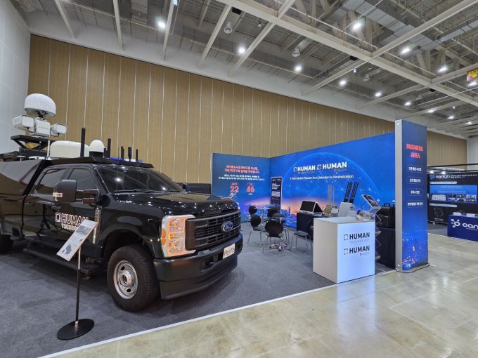 휴먼아고스는 자체 부스를 운영하며 RF 스캐너, GNSS 스푸퍼, C2 소프트웨어, RF 재머, EO/IR 카메라, 기동형 차량 시스템 등 기존 주력 안티드론 장비 및 솔루션을 선보였다. 특히 이번 박람회에서는 휴대형 스푸퍼, 백팩형 재머 등 현재 개발 중인 신제품도 대중들에게 처음으로 공개했다.