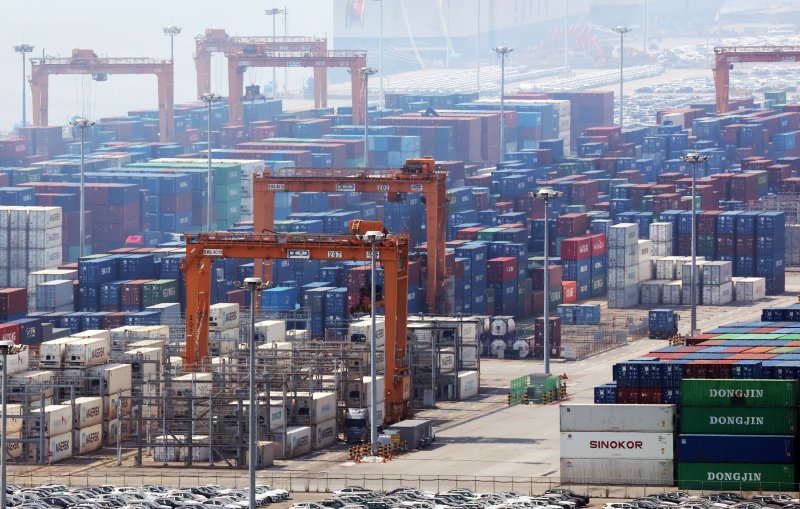 경기 평택시 포승읍 평택항에 수출용 컨테이너가 쌓여있는 모습. 뉴스1 |