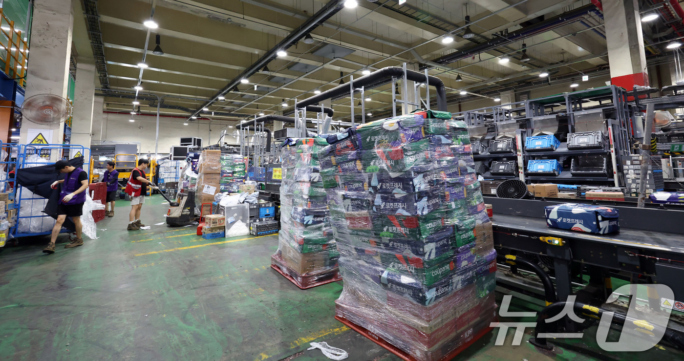 서울의 한 물류센터에서 작업자들이 택배 분류작업을 하고 있다. (공동취재) 2025.7.16/뉴스1 ⓒ News1 구윤성 기자 |