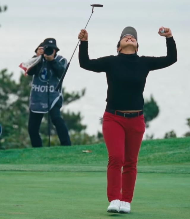 김세영이 지난 19일 열린 LPGA 투어 BMW 레이디스 챔피언십 최종일 챔피언 퍼트를 넣은 뒤 기뻐하고 있다. [사진=LPGA SNS동영상 캡처] |