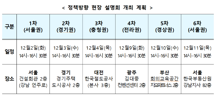 정책방향 현장 설명회 개최 계획. 국토교통부 제공 |