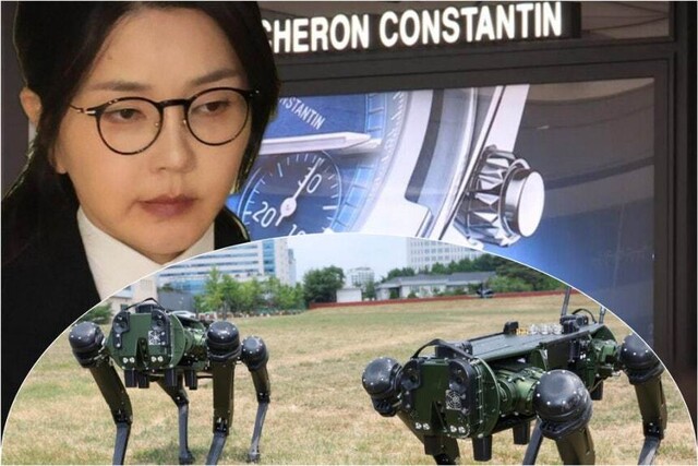 (위) 김건희 여사와 ‘바슈롱 콩스탕탱’(바쉐톤 콘스탄틴) 시계 합성 사진. (아래) 미국 고스트로보틱스사의 로봇개. 연합뉴스 |