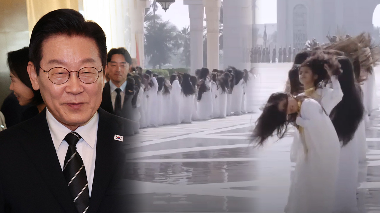 아랍에미리트를 UAE를 국빈 방문한 이재명 대통령 UAE 측으로부터 최고 수준의 국빈 예우를 받았습니다. 한-UAE 정상회담을 위해 아부다비 숙소에서 UAE 대통령궁으로 이동하는 동안 낙타병과 기마병의 도열을 받았고, 하늘에서는 전투기가 날며 호위했습니다. 지상에서는 전통 음악이 연주됐됐고, 흰 옷을 입은 여성들이 긴 머리를 흔들면서 춤을 추는 '알 아얄라'가 펼쳐졌는데요. 귀한 손님에게 축복을 내리는 전통 공연입니다. 대통령실에 따르면 아부다비 곳곳에 내걸린 태극기는 역대 가장 많은 숫자라고 합니다.