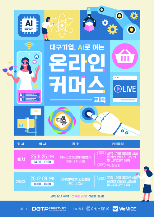 한편, 이번 교육은 오는 25일과 12월 6일 두 차례에 걸쳐 진행되며, 참가 신청은 지역기업이 개발한 대구 모임 전문 플랫폼 위마이스와 다채몰 홈페이지를 통해 가능하다. 지역기업뿐 아니라 대학생, 예비창업자 등 관심 있는 누구나 참여할 수 있다.