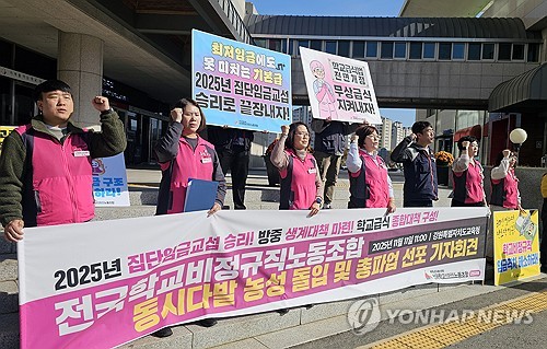 교육부와 17개 시도교육청은 전국학교비정규직연대회의(연대회의)와 지난 8월부터 2025년 집단임금 교섭을 진행했으나 입장 차이를 좁히지 못했다.