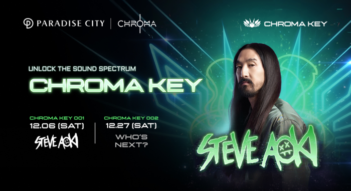 파라다이스시티는 오는 12월 6일 세계적인 사랑을 받는 DJ 스티브 아오키를 초청해 페스티벌 ‘크로마 키(CHROMA KEY)’를 개최한다고 19일 밝혔다. ‘크로마 키’는 파라다이스시티가 선보이는 새로운 DJ 페스티벌이다. 크로마 키는 12월 27일에도 공연을 진행한다. 내년에도 정기 시리즈 형태로 공연을 이어갈 예정이다.