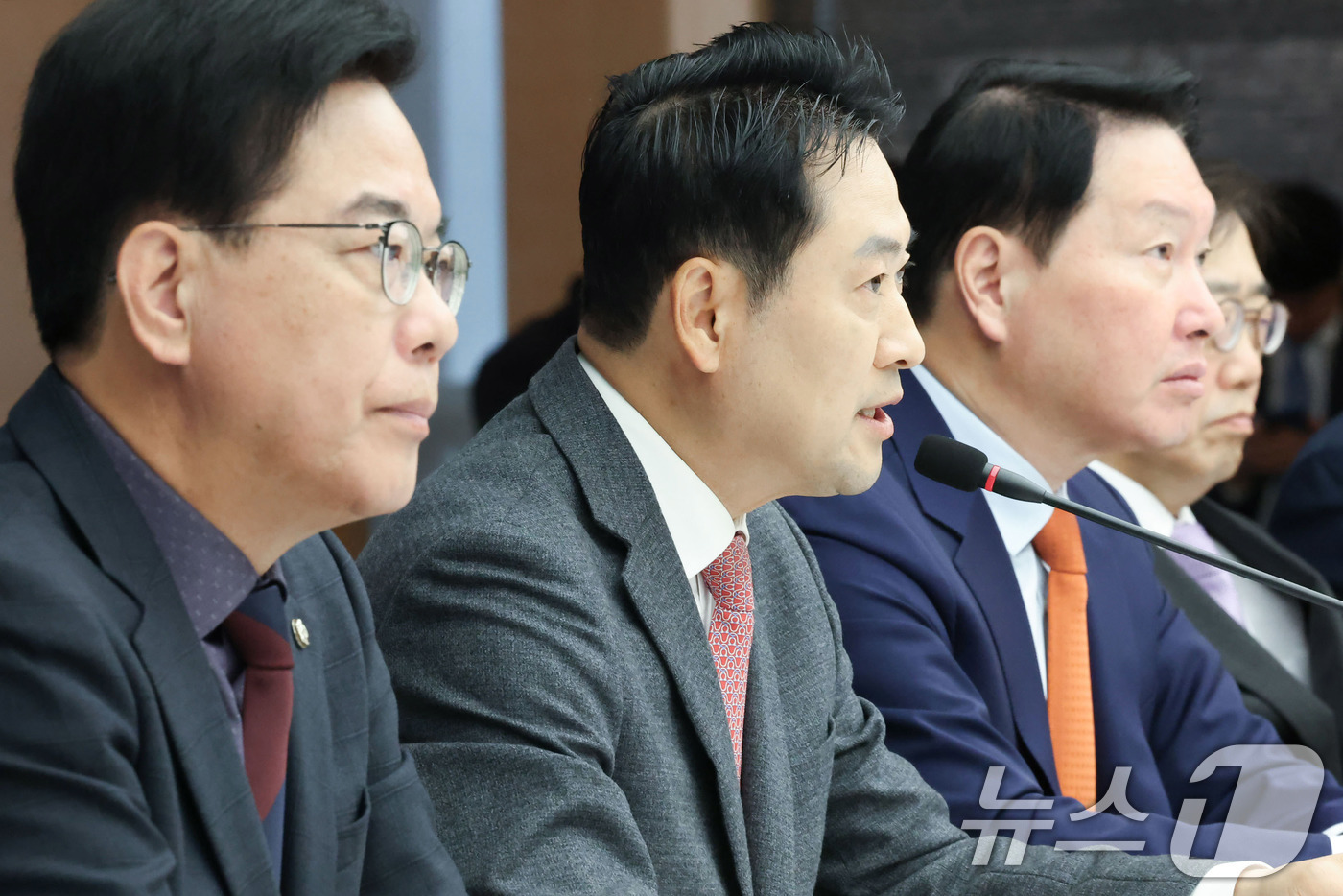 (서울=뉴스1) 박지혜 기자 = 장동혁 국민의힘 대표가 19일 서울 중구 대한상공회의소 챔버라운지에서 열린 '국민의힘-대한상공회의소 정책간담회'에서 모두 발언을 하고 있다.(공동취재) 2025.11.19/뉴스1