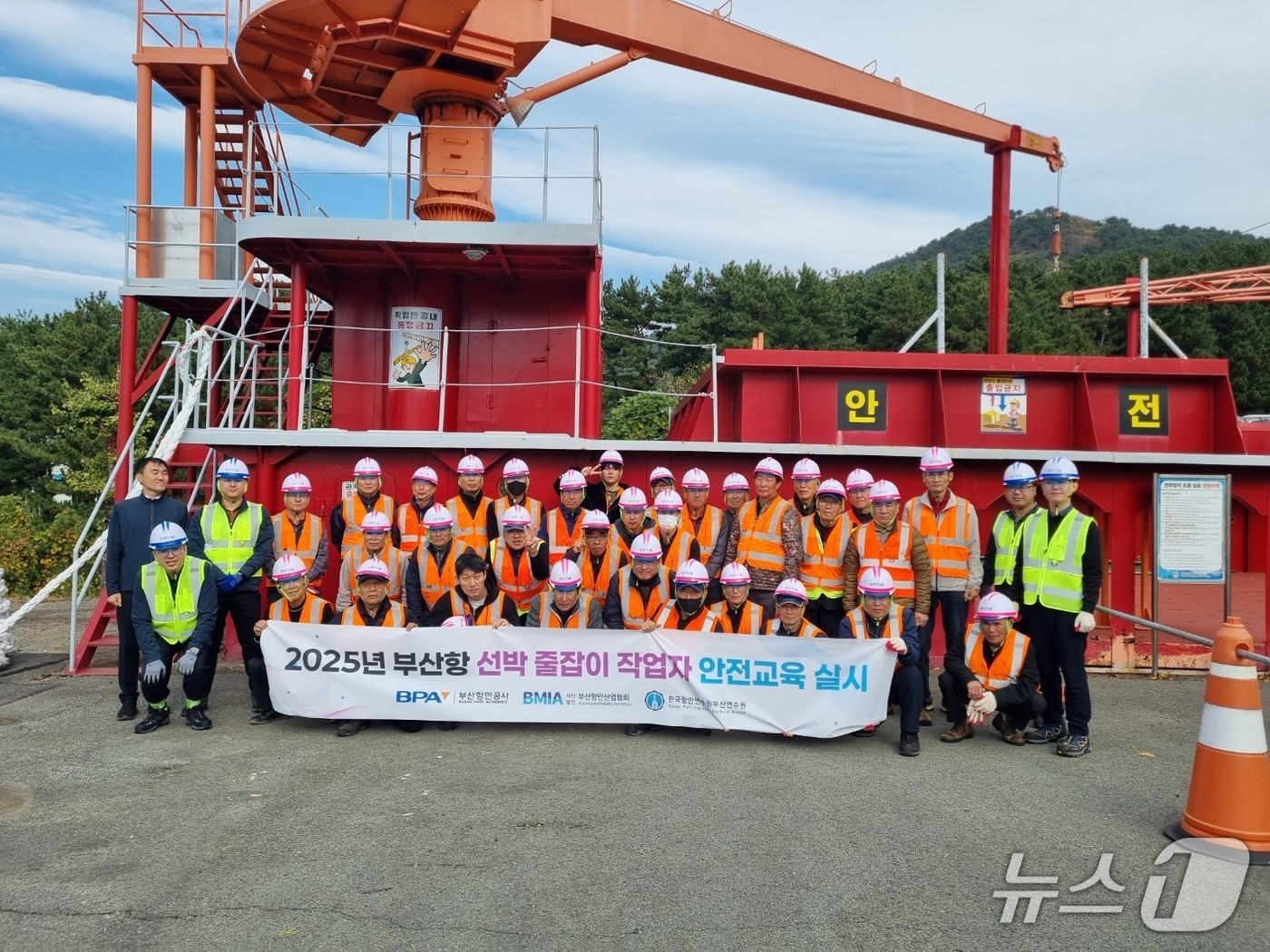 줄잡이 근로자 안전교육에 참석한 근로자들이 기념촬영을 하는 모습 (BPA 제공. 재판매 및 DB금지) |