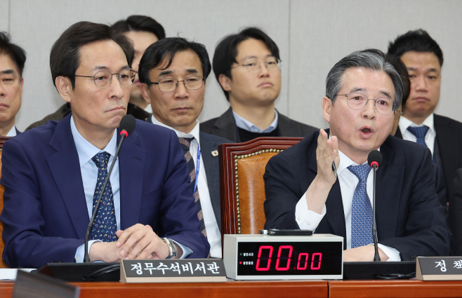 18일 서울 여의도 국회에서 열린 운영위원회 전체회의에서 김용범 대통령실 정책실장이 질의에 답하고 있다./연합뉴스 |