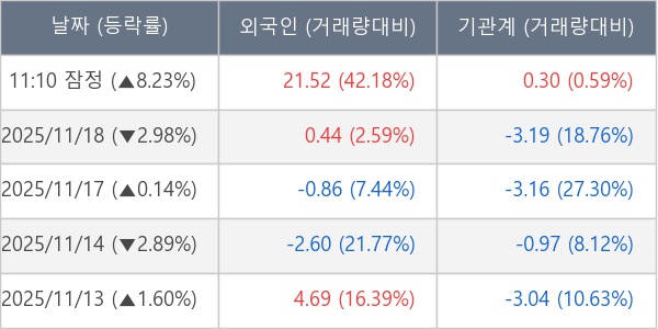 ※ 사모펀드 등 일부 기관의 순매매량은 표시되지 않음