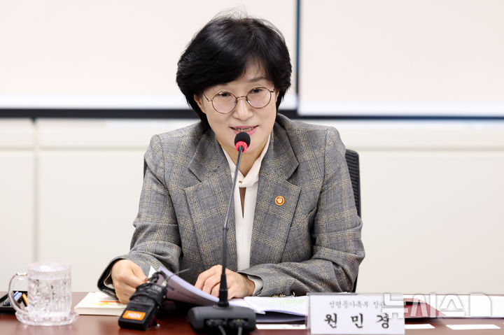 [서울=뉴시스] 추상철 기자 = 원민경 성평등가족부 장관이 14일 오전 서울 종로구 정부서울청사에서 열린 여성 경제·과학기술 분야 단체장 소통 간담회에서 모두발언을 하고 있다. 2025.11.14. scchoo@newsis.com |