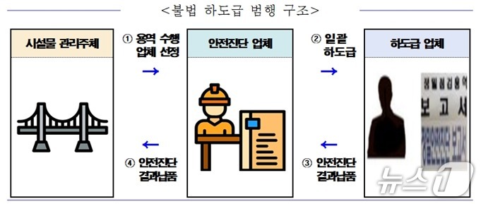 A 씨 등은 2023년 5월부터 올해 3월까지 지방자치단체, 공공기관이 발주하는 교량·터널 등 시설물의 안전진단 및 설계 등 용역을 발주처에 통보하지 않고 불법하도급 한 혐의를 받는다. 안전진단기관으로 등록하지 않고 용역을 수행한 경우도 있다.