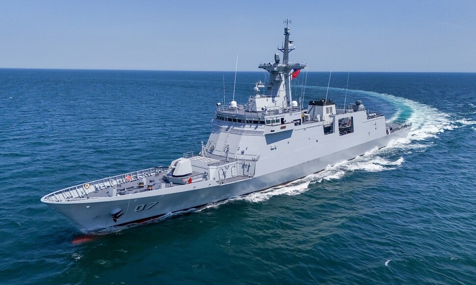 에이치디(HD)현대가 최근 인도한 필리핀 초계함 2번함 ‘디에고 실랑함.’ 에이치디현대 제공 |