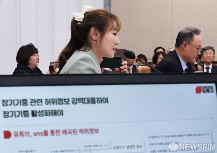 [서울=뉴스핌] 윤창빈 기자 = 김예지 국민의힘 의원이 22일 오전 서울 여의도 국회에서 열린 보건복지위원회의 한국보건산업진흥원 등에 대한 국정감사에서 질의하고 있다. 2025.10.22 pangbin@newspim.com |