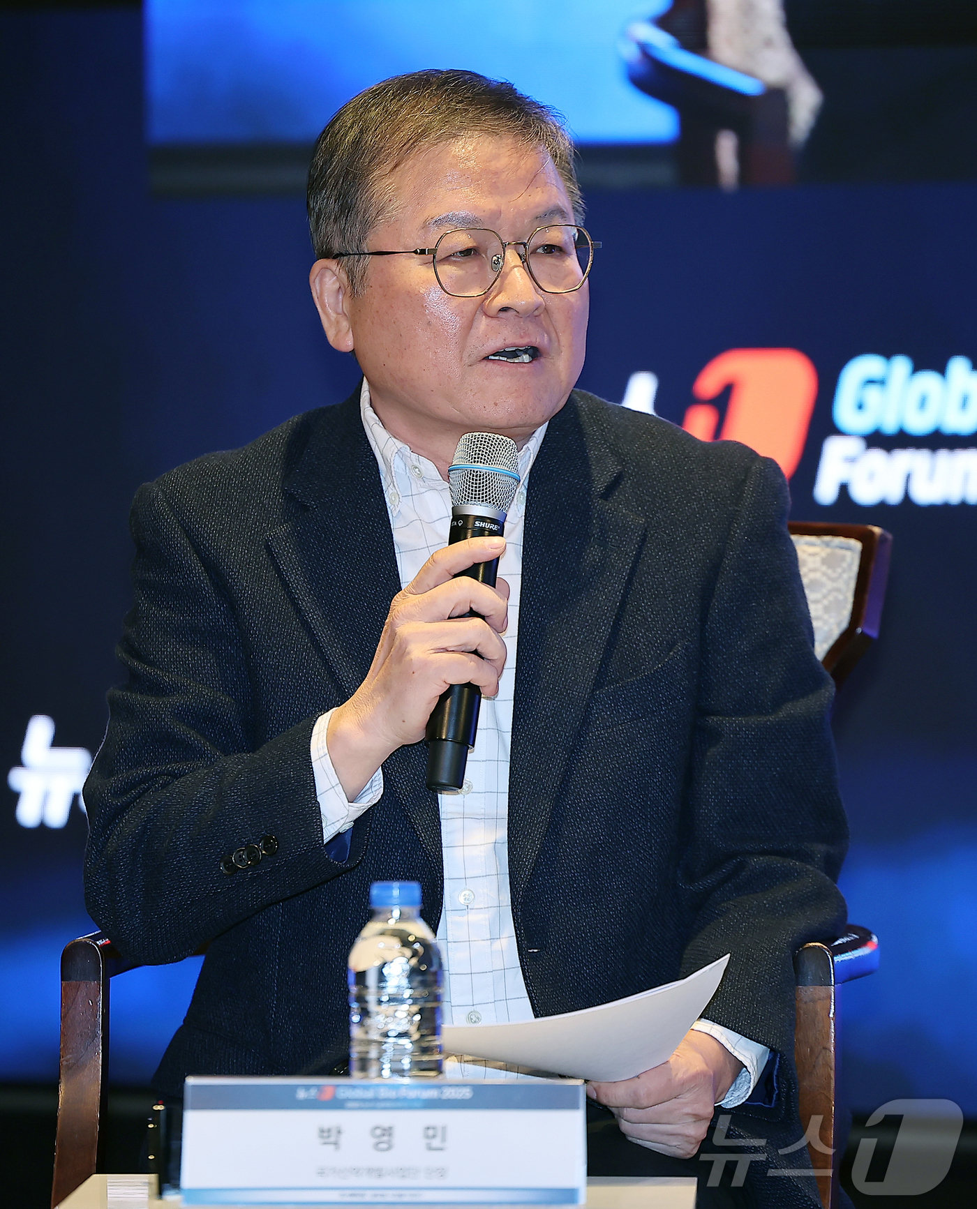 (서울=뉴스1) 김진환 기자 = 박영민 국가신약개발사업단 단장이 19일 오전 서울 중구 소공동 롯데호텔 사파이어볼룸에서 열린 '뉴스1 글로벌바이오포럼(GBF) 2025’에 참석해 'K-바이오, 글로벌 경쟁력 확보 방안'이라는 패널 토론에서 진행하고 있다. 2025.11.19/뉴스1