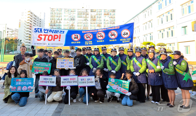 (대전=뉴스1) 이동원 기자 = 대전중부경찰서(서장 백기동)는 19일 등교시간대, 태평초등학교에서 녹색어머니회, 태평초교 교직원 및 학생들과 함께 어린이 교통안전 및 납치·유괴 예방 합동 캠페인을 펼쳤다. 이날 캠페인에서는 태평초교 어린이 보호구역 내 교통 안전 위험 요소를 점검하고, 학부모 대상 반칙운전 근절, 스쿨존 내 규정속도 준수 등 교통법규 준수를 당부했다. (대전경찰청 제공. 재판매 및 DB금지) 2025.11.19/뉴스1