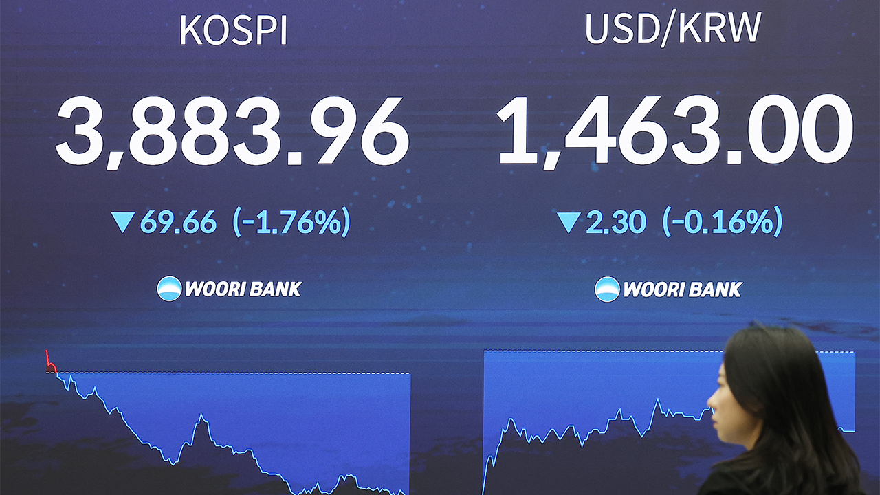 ▲ 19일 서울 중구 우리은행 본점 딜링룸 현황판에 코스피 지수, 원달러 환율이 표시돼 있다.