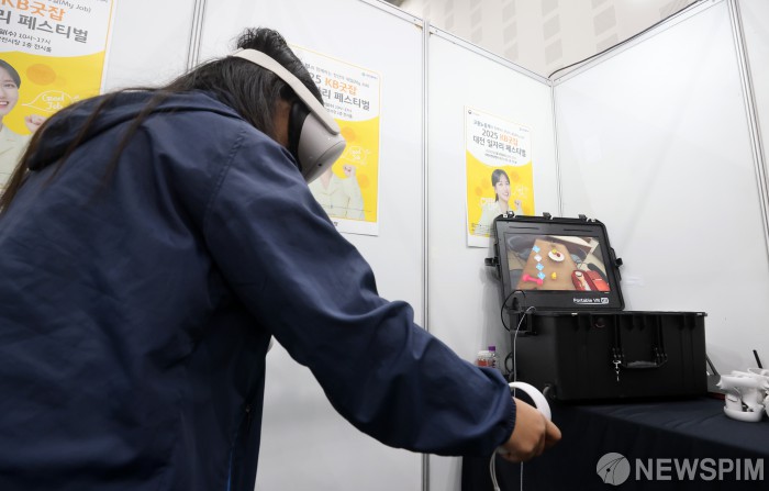 [대전=뉴스핌] 최지환 기자 = 19일 대전 유성구 컨벤션센터에서 열린 2025 KB굿잡 대전 일자리 페스티벌에서 구직자들이 직업체험을 하고 있다. 2025.11.19 choipix16@newspim.com