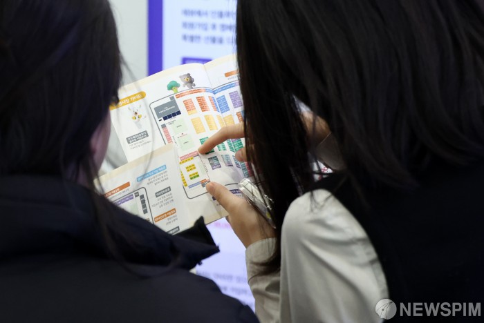 [대전=뉴스핌] 최지환 기자 = 19일 대전 유성구 컨벤션센터에서 열린 2025 KB굿잡 대전 일자리 페스티벌에서 구직자들이 팜플렛을 살펴보고 있다. 2025.11.19 choipix16@newspim.com