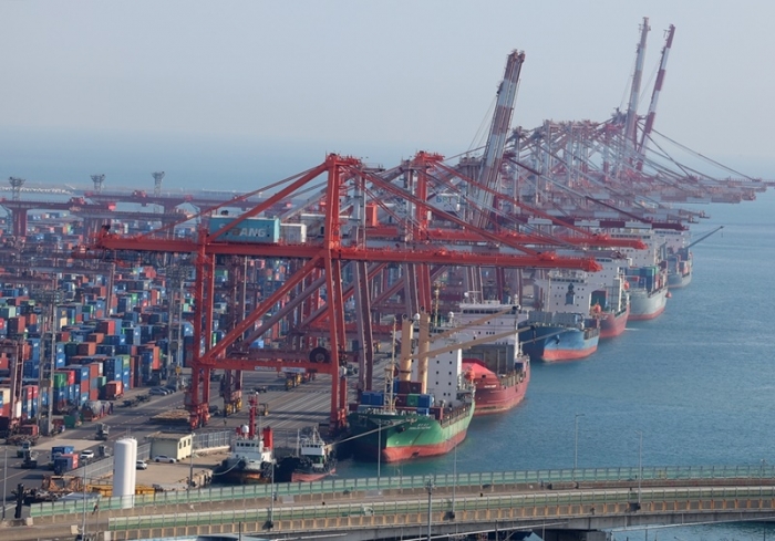 부산항에 쌓인 수출입 컨테이너 모습. 사진=연합뉴스 |