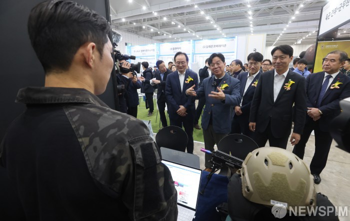 [대전=뉴스핌] 최지환 기자 = 김영훈 고용노동부 장관이 19일 대전 유성구 컨벤션센터에서 열린 2025 KB굿잡 대전 일자리 페스티벌 개막식을 마치고 부스를 살펴보고 있다. 2025.11.19 choipix16@newspim.com