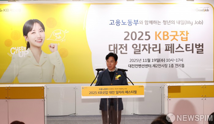 [대전=뉴스핌] 최지환 기자 = 김영훈 고용노동부 장관이 19일 대전 유성구 컨벤션센터에서 열린 2025 KB굿잡 대전 일자리 페스티벌 개막식에서 발언하고 있다. 2025.11.19 choipix16@newspim.com