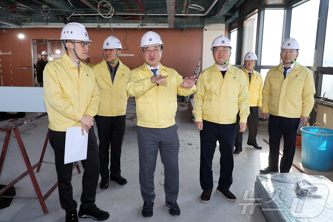 (서울=뉴스1) = 윤호중 행정안전부 장관이 19일 오전 부산광역시 동구에 위치한 해양수산부 부산청사 이전 준비상황 현장을 점검하고 있다. (행정안전부 제공. 재판매 및 DB 금지) 2025.11.19/뉴스1