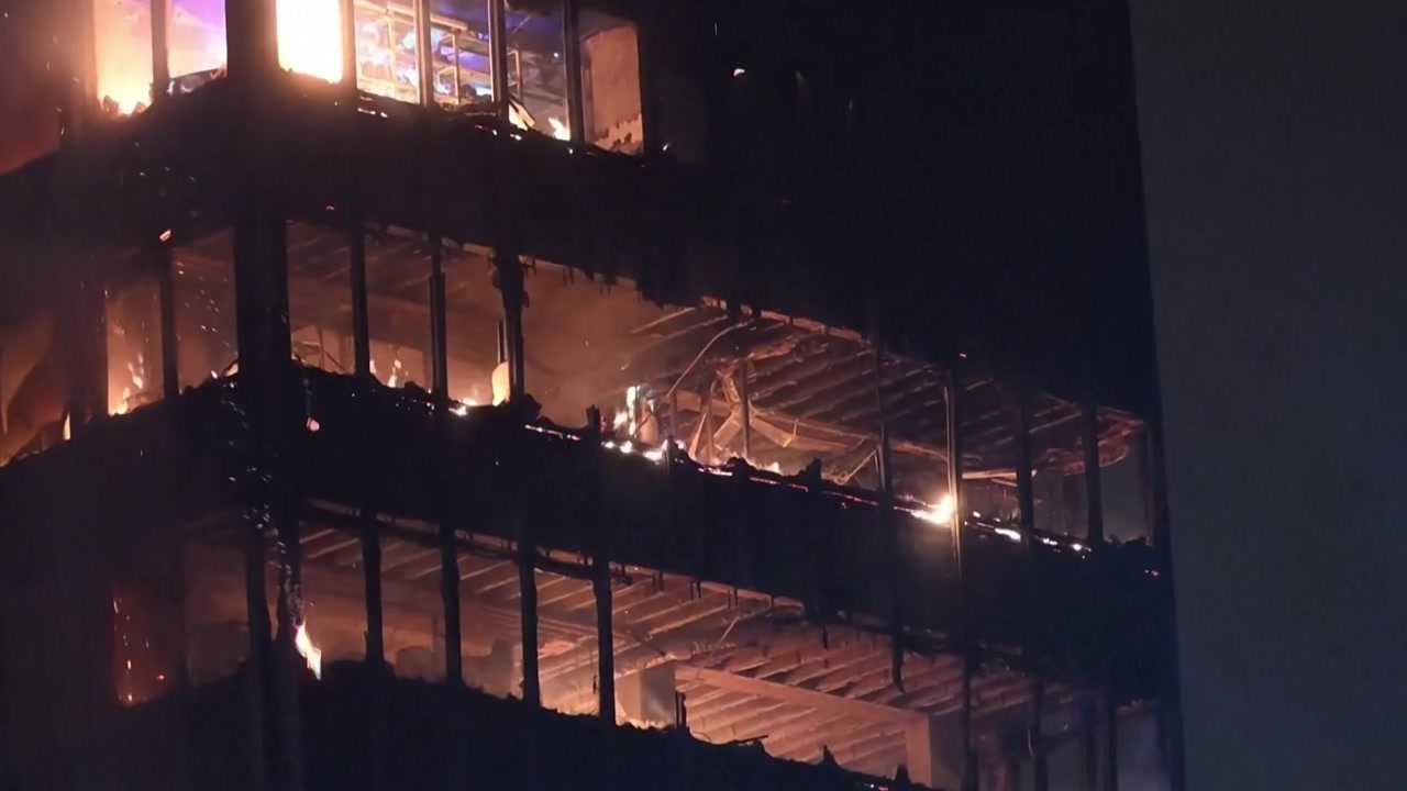 고층 건물 곳곳에서 불길이 타오르고 있습니다.